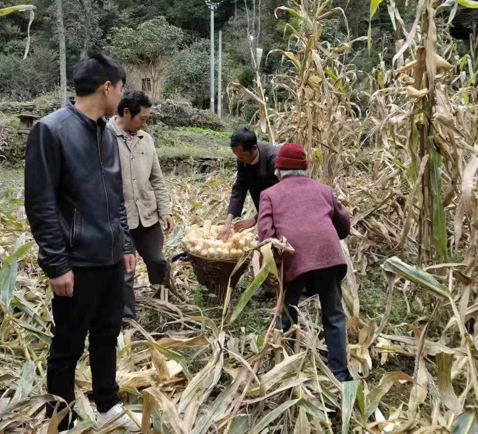 岚天:志愿者和社工帮助独居老人收玉米