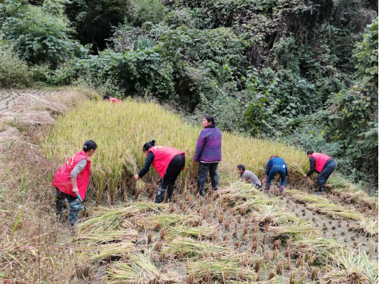 蓼子乡:志愿者齐上阵,收割水稻献爱心